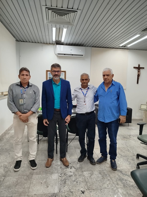 Nesta sexta-feira, 16, o reitor em exercício da Universidade Federal Rural da Amazônia (Ufra), professor Jaime Viana, recebeu os representantes da Agência de Defesa Agropecuária do Estado do Pará (ADEPARA), Cleber Sampaio e Luiz Guamá. A reunião, que também contou com a presença do Superintendente de Comunicação da Ufra, professor José Itabirici de Souza e Silva Junior, teve como objetico tratar sobre a realização do II Seminário Nacional sobre Insumos Agropecuários (SENAGRI), que acontecerá em Belém, de 10 a 12 de junho de 2025, no Hangar Centro de Convenções e Feiras da Amazônia.
